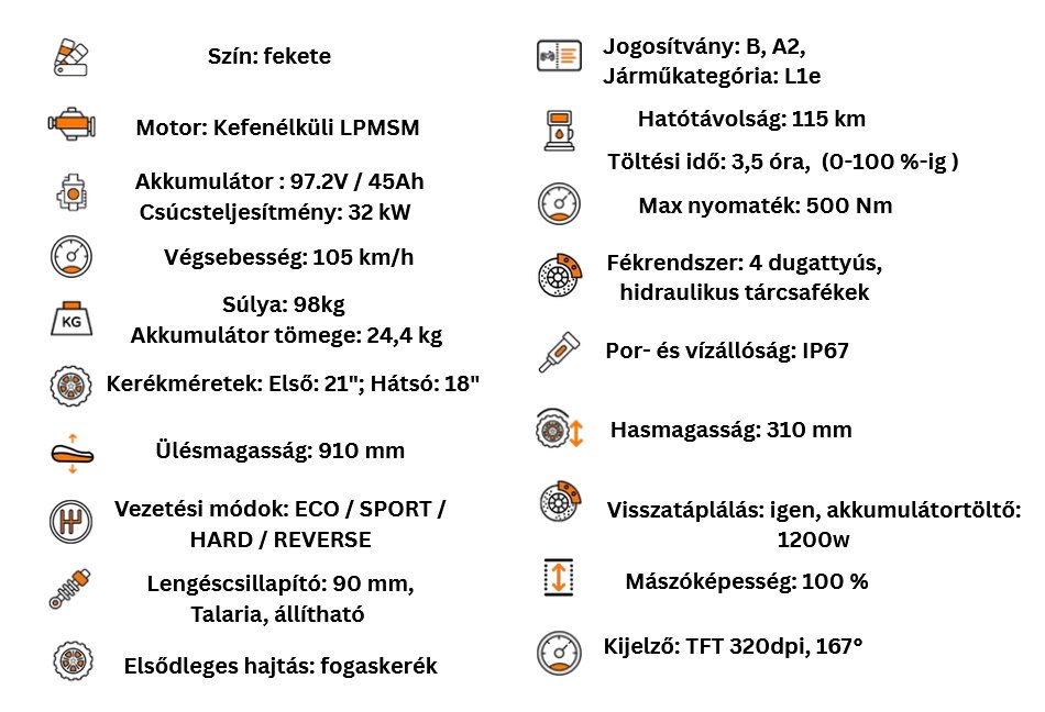A Talaria Komodo 32 kW-os csúcsteljesítménye (1 perces időtartamig) és