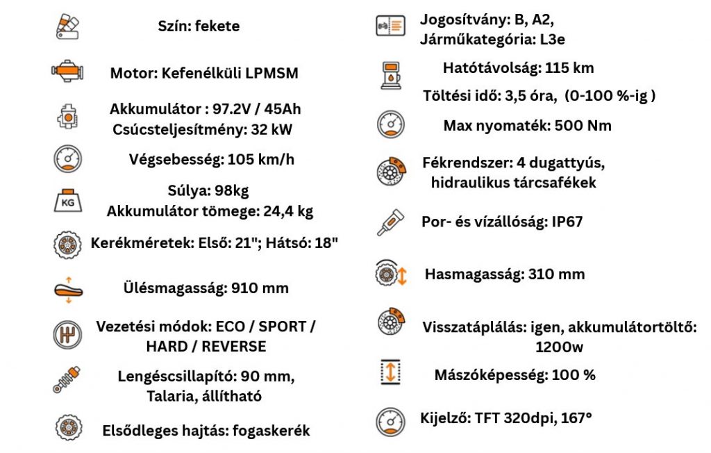 névleges teljesítménye komoly motoros tudást igényel. A rendszer 97.2 V-os, 45Ah-s